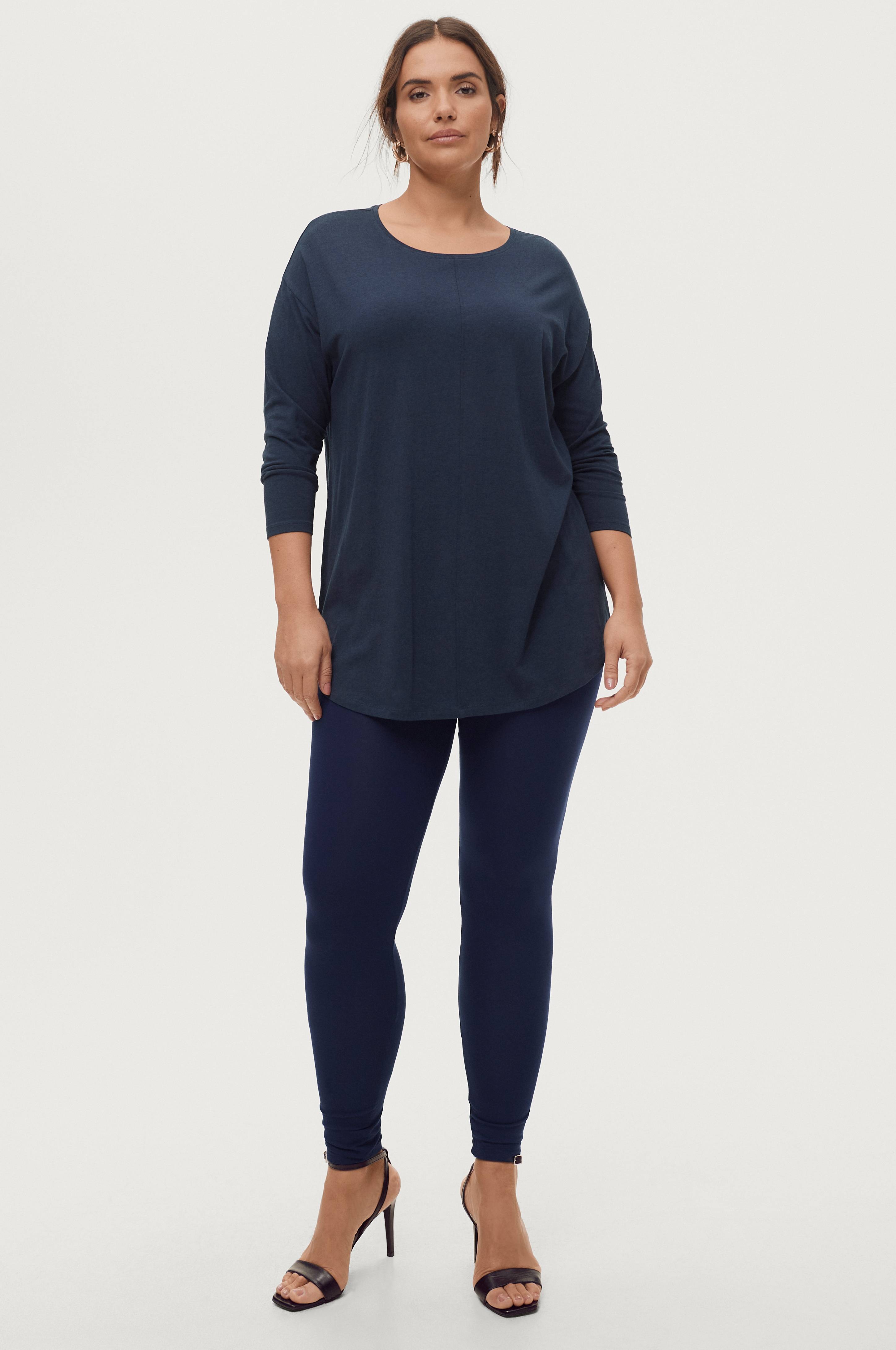 Leggings Long Slim Fit Stretchy Basic från Zizzi i tunn, mjuk viskostrikå med smal resår i midjan.