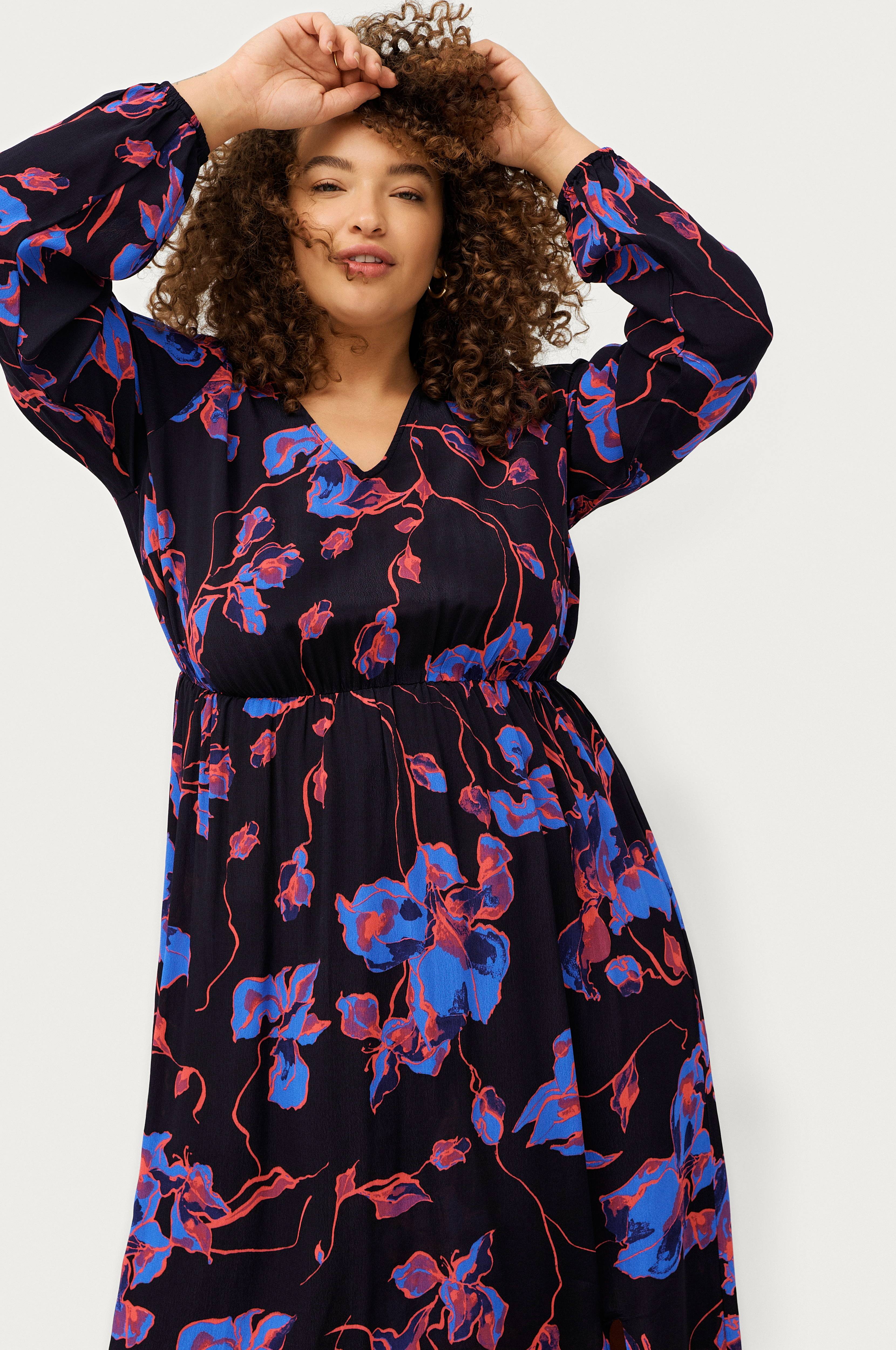 • V-ringning• Elastisk midja• Långa ärmar med elastiska ärmslut• Slits fram• Plusstorlekar• Längd: 132 cm i storlek S