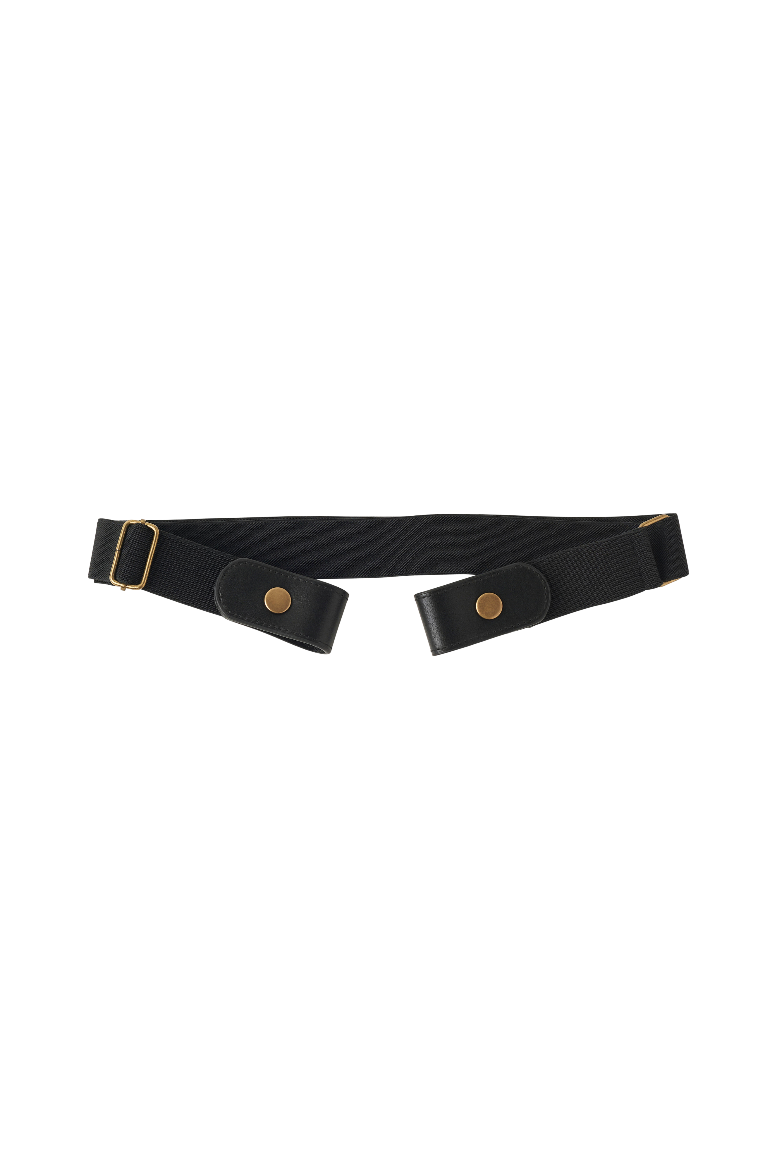 Stretchigt skärp med detaljer i skinnimitation och tryckknappar som fästs runt hällorna på byxorna. Bredd 3,5 cm