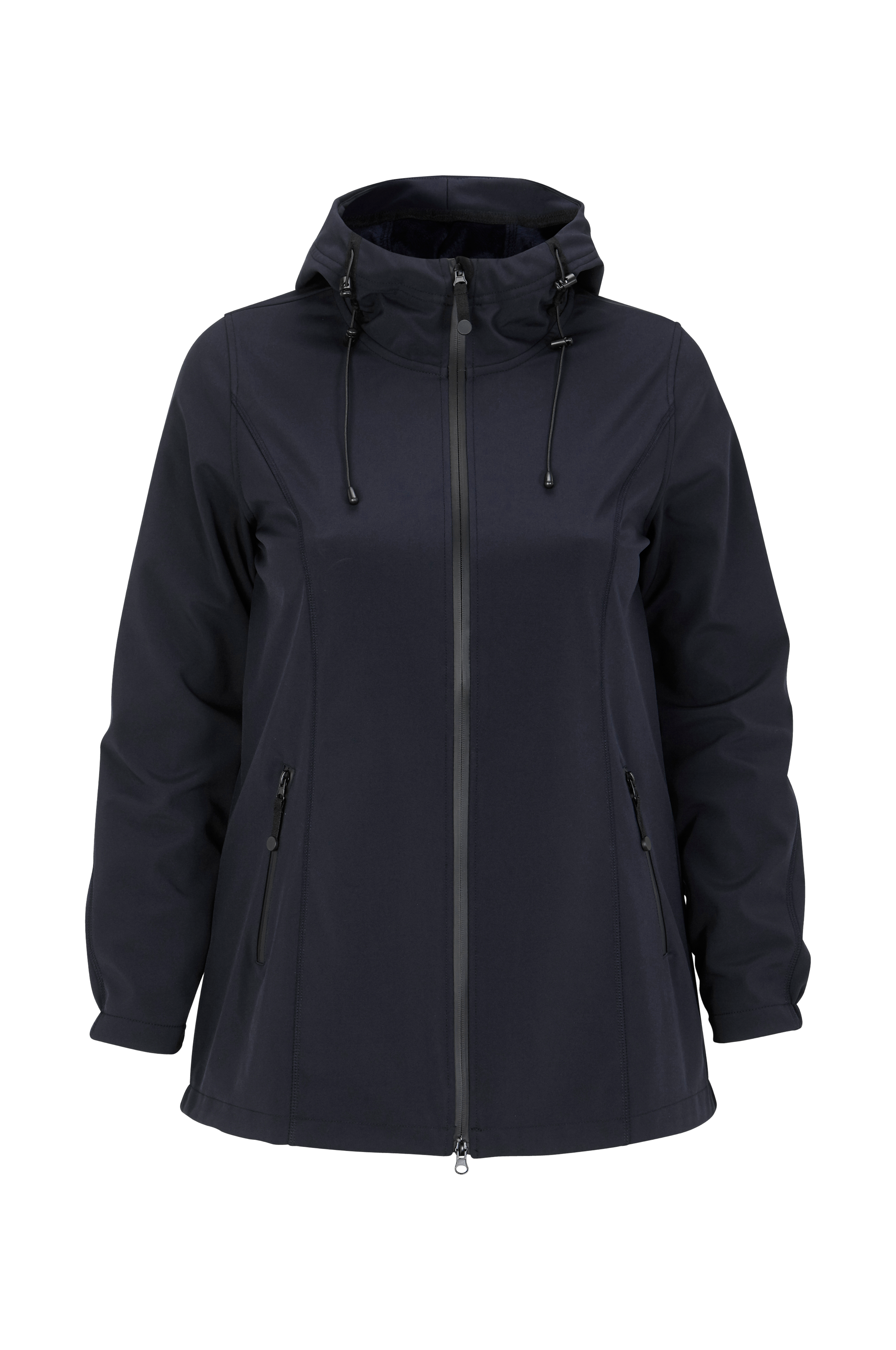 Softshelljacka från Zizzi i funktionsmaterial som är vattenavvisande (3000 mm vattenpelare) och vindtätt med andasfunktion som släpper igenom 500 g/m2/24h samt mjuk insida i fleece. Modell med vattentät dragkedja fram med hög krage och skavskydd vid hakan. Fodrad huva med dragsko och stoppers samt två infällda fickor med dragkedja. Infälld resår i ärmslut och rundskuren nederkant bak som är lite längre. Längd ca 80 cm i stl M.