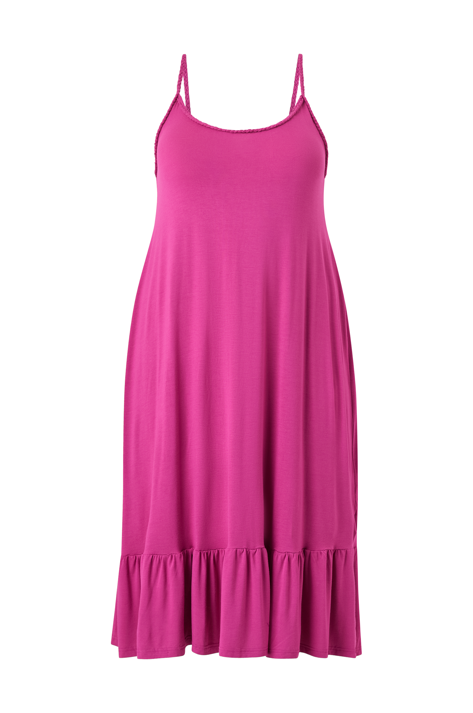 • Plusstorlekar• Utsvängd modell i trikå• Flätade axelband• Volang nedtill• Längd: 116 cm i storlek S