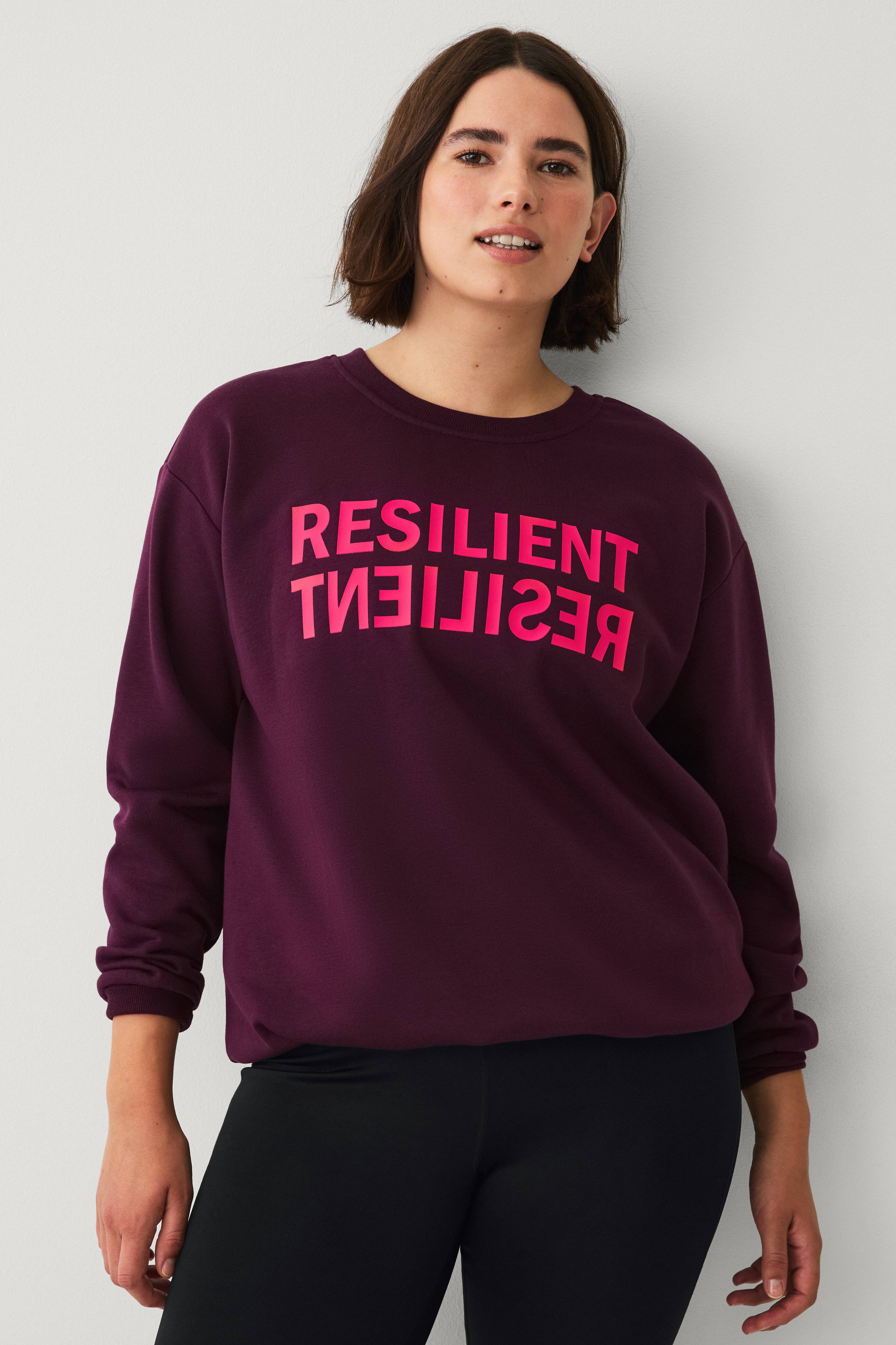 • Mjuk, borstad insida• Lös passform• Rund, ribbad halsringning• Applikation i frotté fram• Ribbmuddar i ärmsluten och nedtill• Plusstorlekar