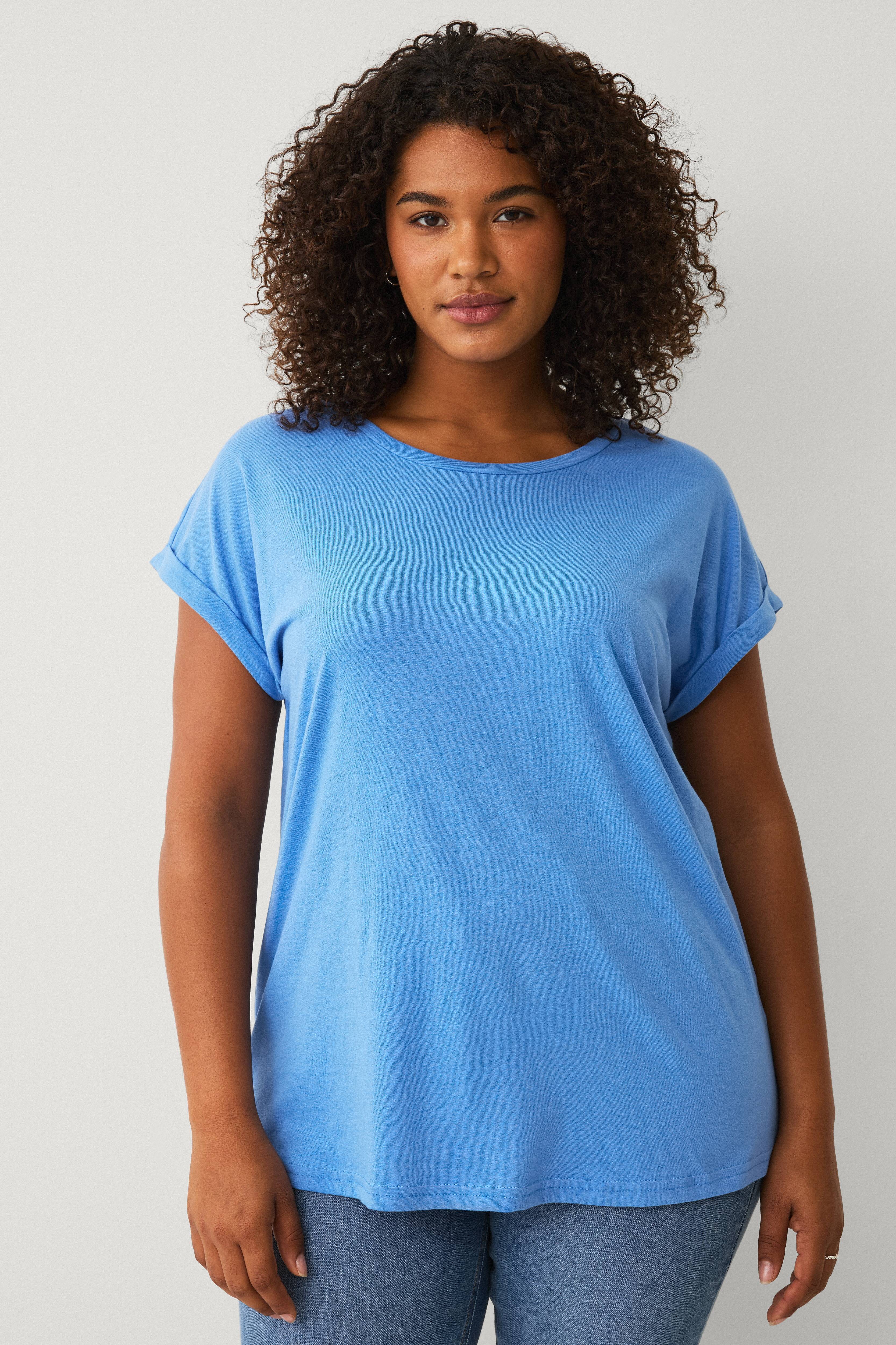 • Kort ärm med uppvik• Rund halsringning• Lös passform• Plusstorlekar