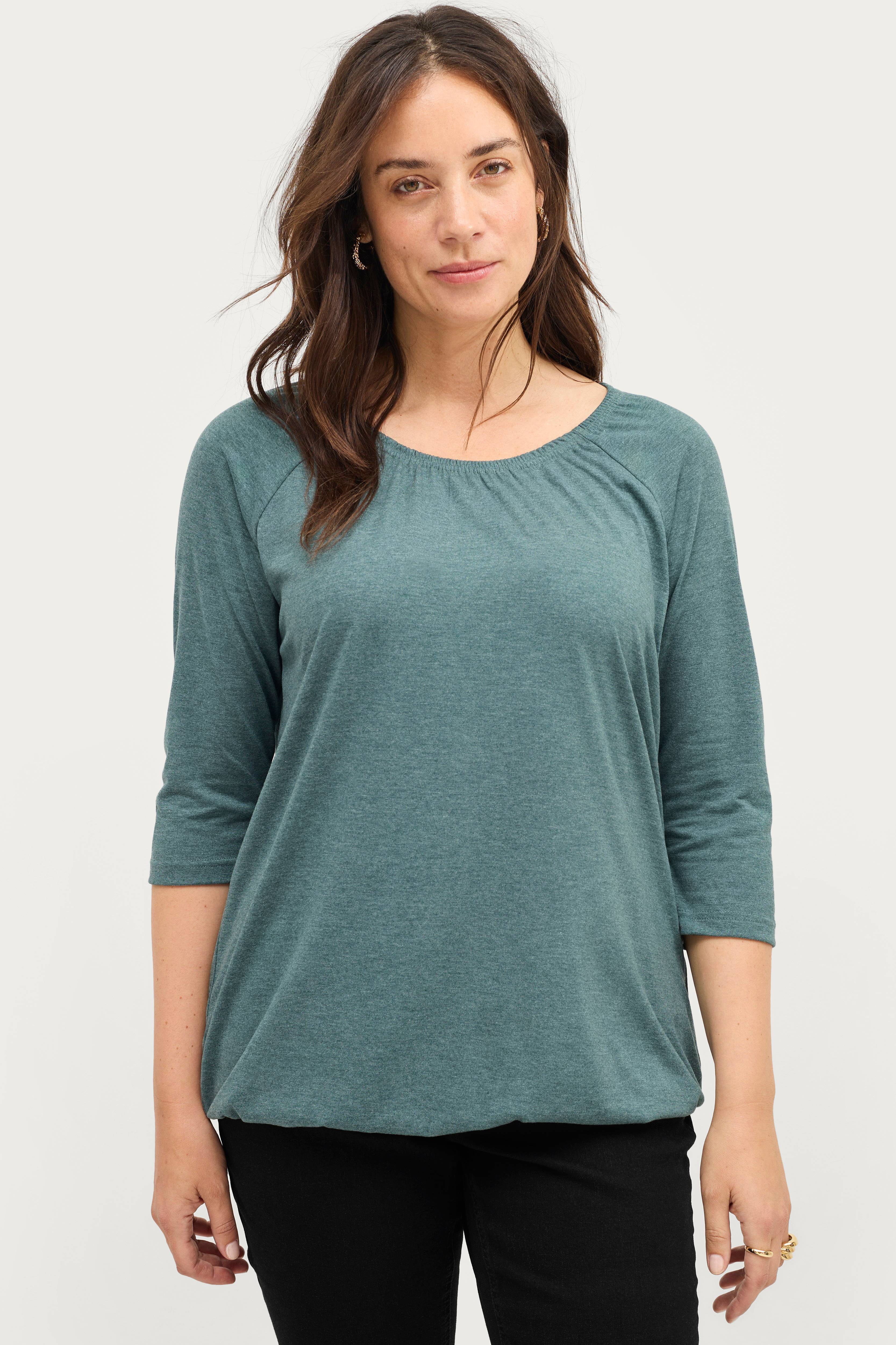 • Ledig modell i trikå• Rund hals med mjuk resår• 3/4-lång raglanärm• Resår i nederkanten