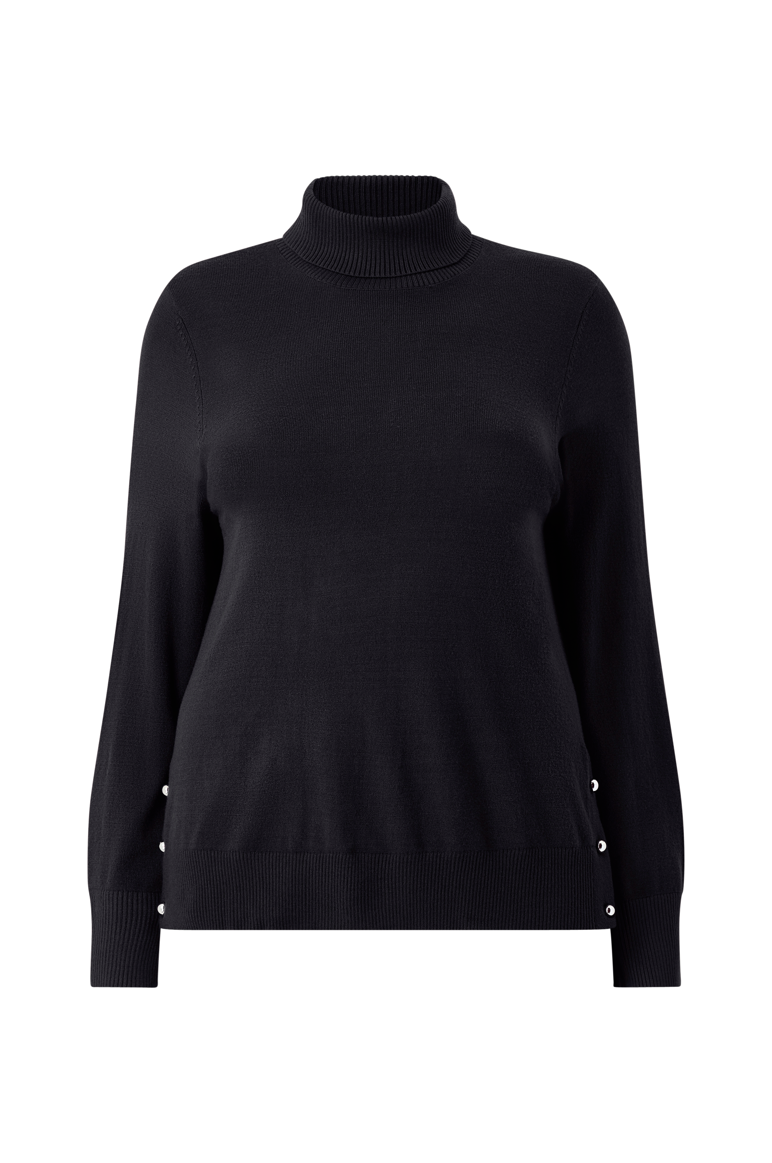 • Tunn, finstickad tröja i viskos med ribbstickad polokrage• Långa ärmar• Sprund nedtill i sidorna med dekorativa, silvriga knappar• Ribbstickning i ärmsluten och i nederkanten• Plusstorlekar