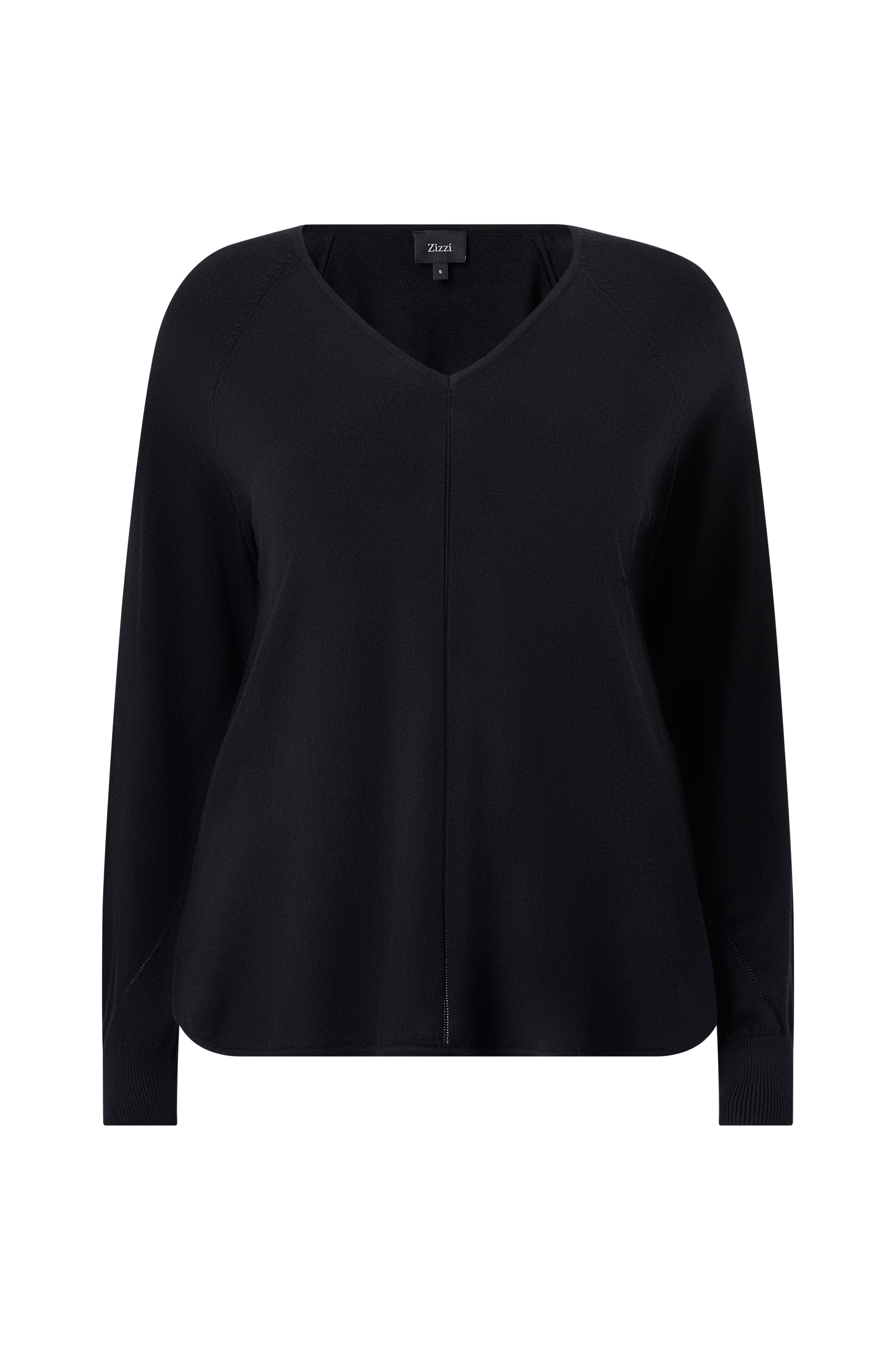 • Mjuk, finstickad tröja i viskosmix• Vid, v-ringad hals• Långa raglanärmar med ribbmuddar• Hålstickade mönster längs ärmarna och framtill• Slitsar nedtill i sidorna• Plusstorlekar