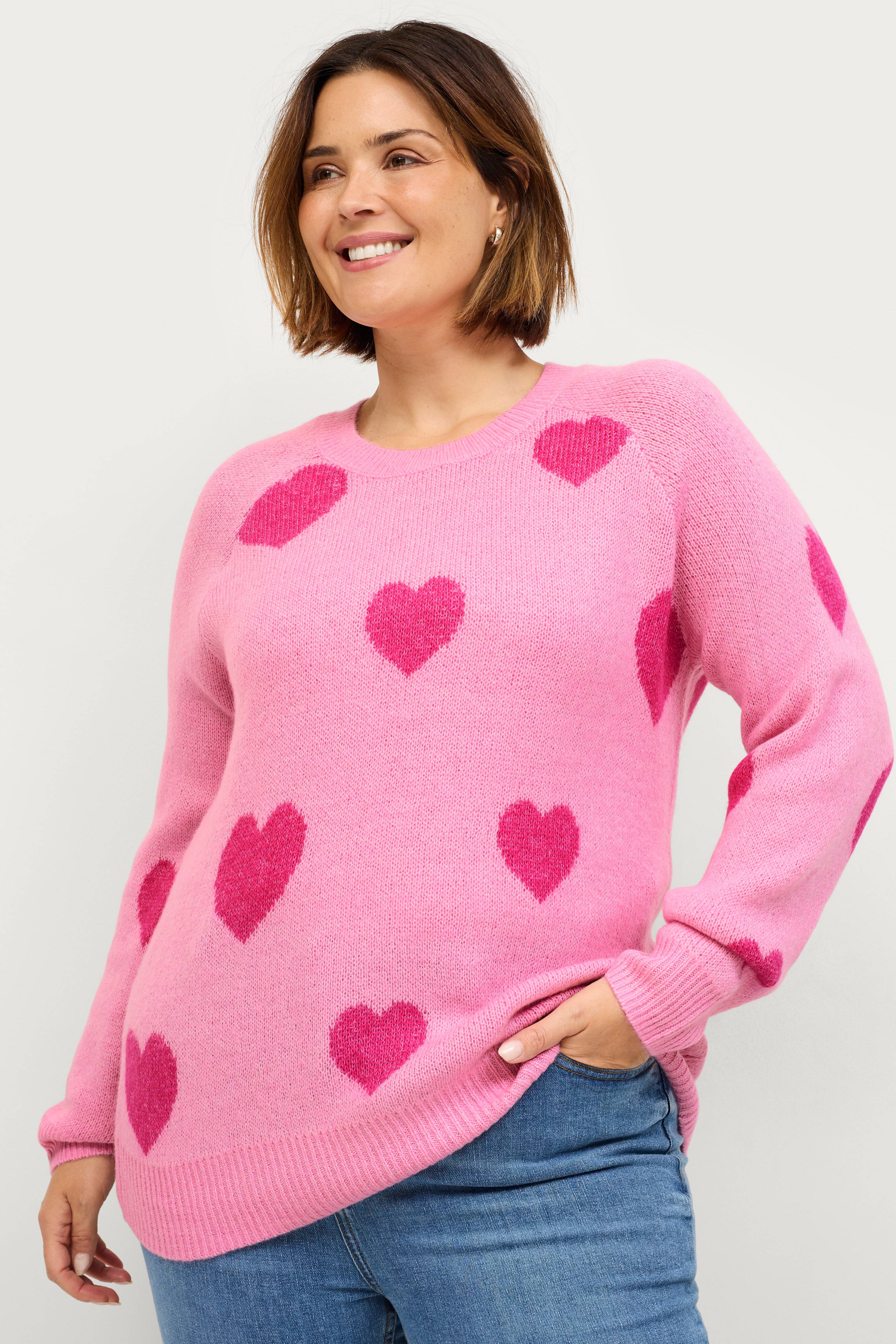 • Stickad tröja med hjärtan