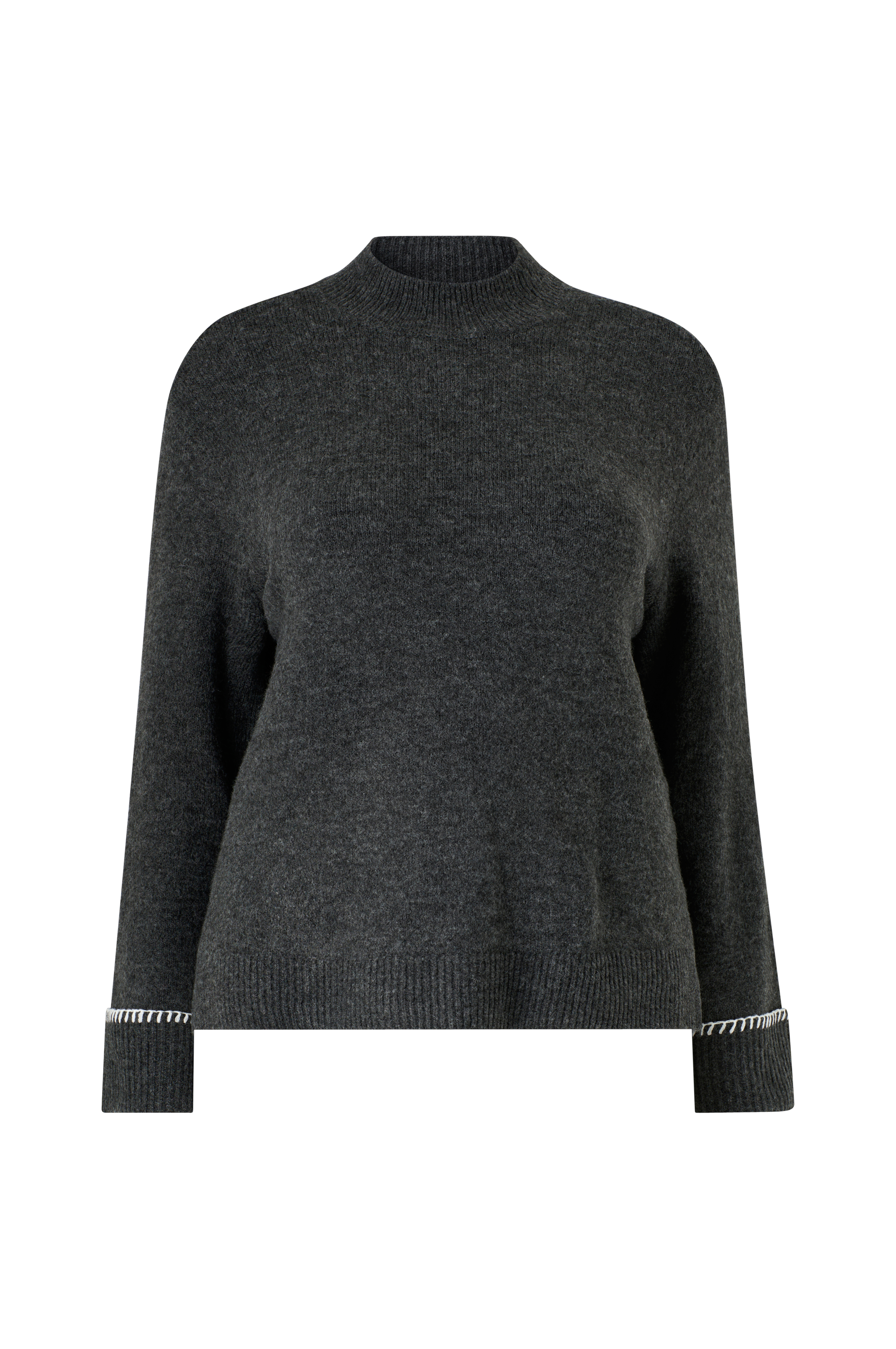 • Mjuk, finstickad tröja med halvhög krage• Ribbstickning i ärmsluten och i nederkanten• Uppsydda ärmslut med dekorstickning• Slitsar nedtill i sidorna• Plusstorlekar