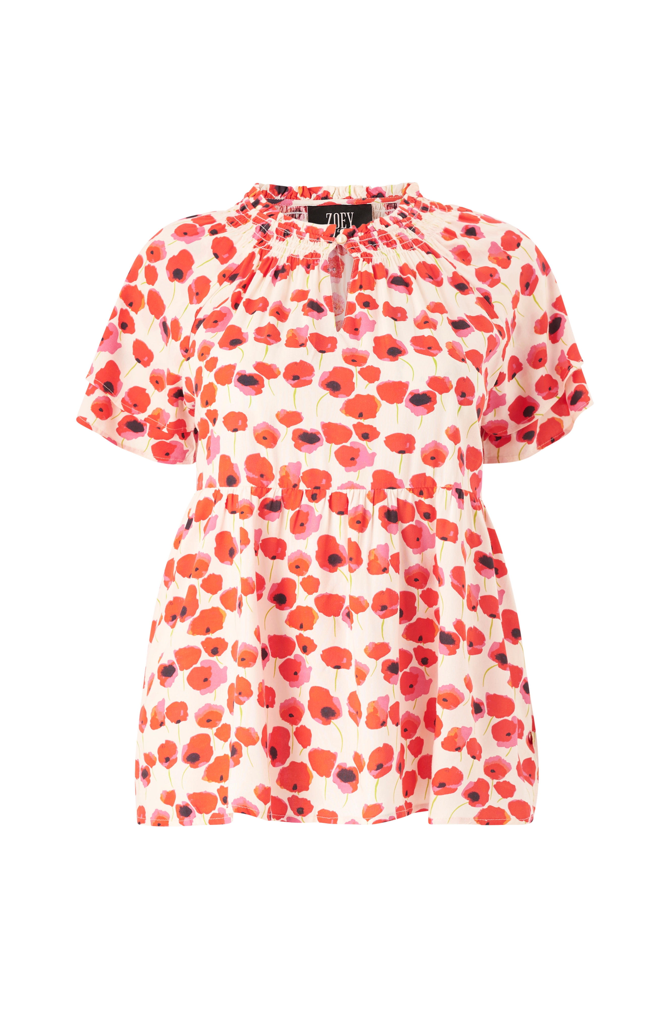 • Peplumdesign• Smock med volang i halsen• Sprund med knapp fram• Korta volangärmar• Plusstorlekar