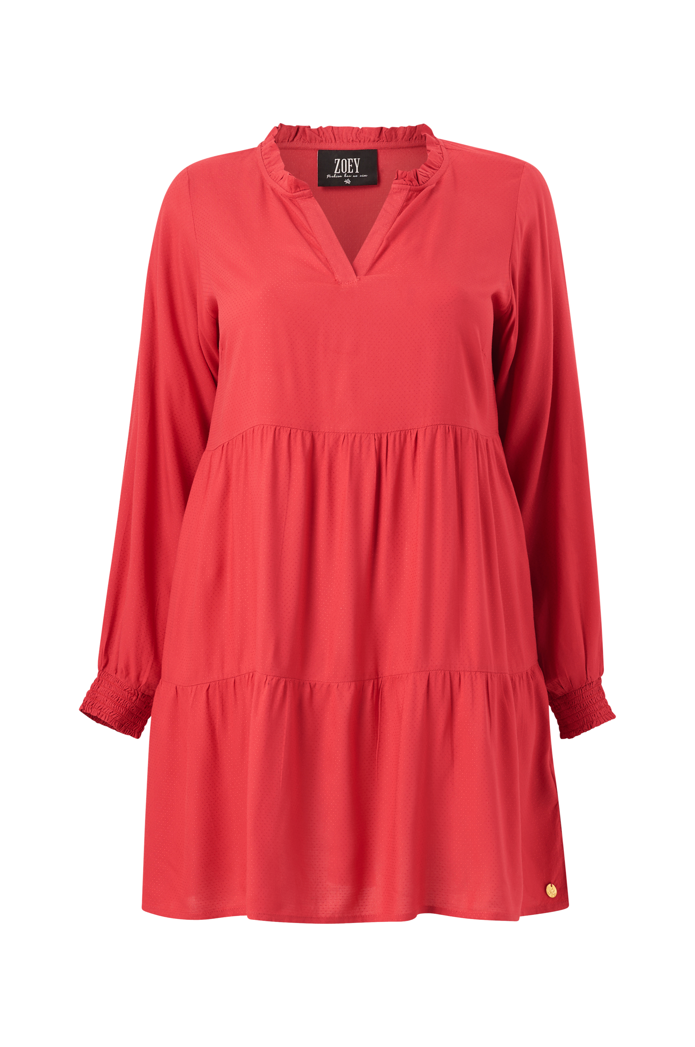 • Kort, utsvängd modell• V-ringning• Volang i halsen• Smock i ärmsluten• Plusstorlekar• Längd: 95 cm i storlek S