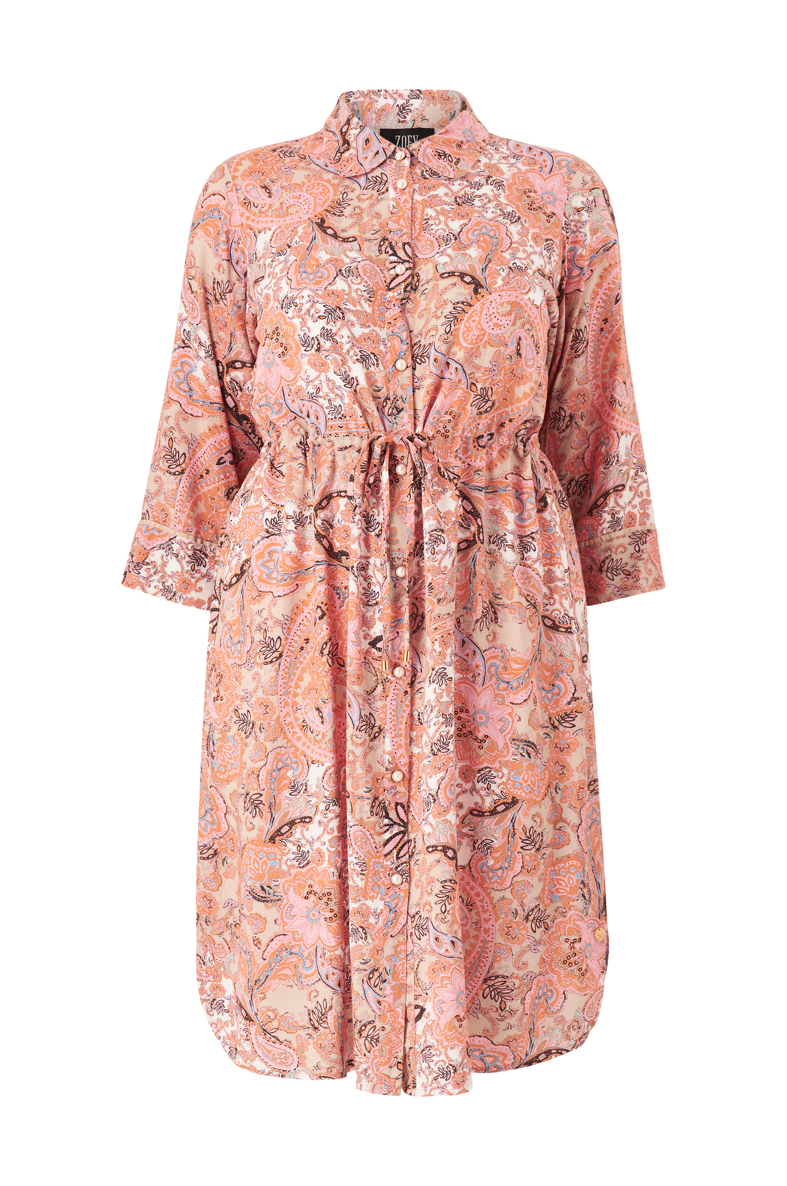 • Mönstrad klänning i viskos• Pärlknappar fram• 3/4-långa ärmar• Dragsko i midjan• Plusstorlekar• Längd: 110 cm i storlek S